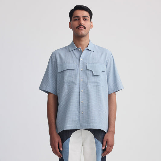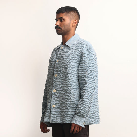 Actin Wrinkled Maheshwar Overshirt- Blue