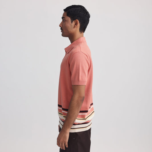 Canopy Striped Polo- Salmon