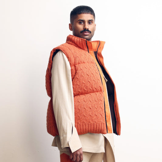 Pericardium Handknit Puffer Gilet- Navy Blue