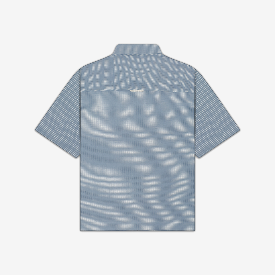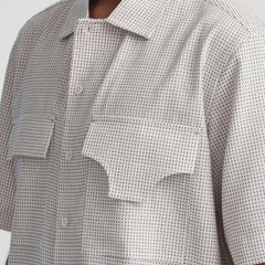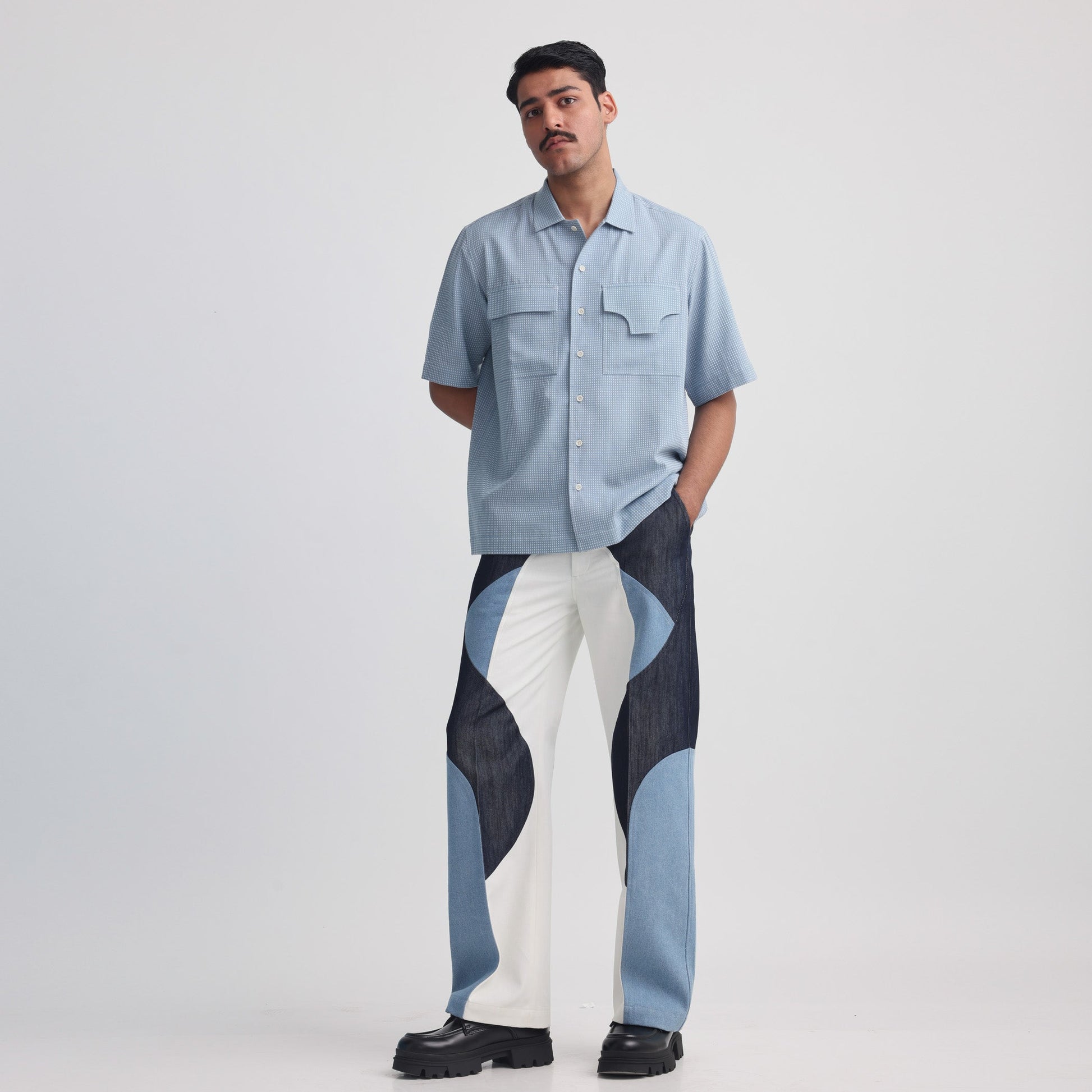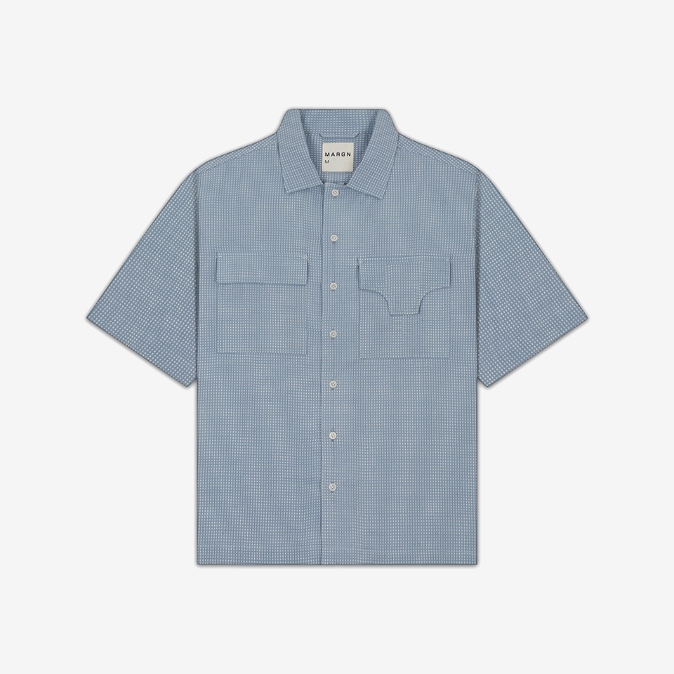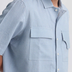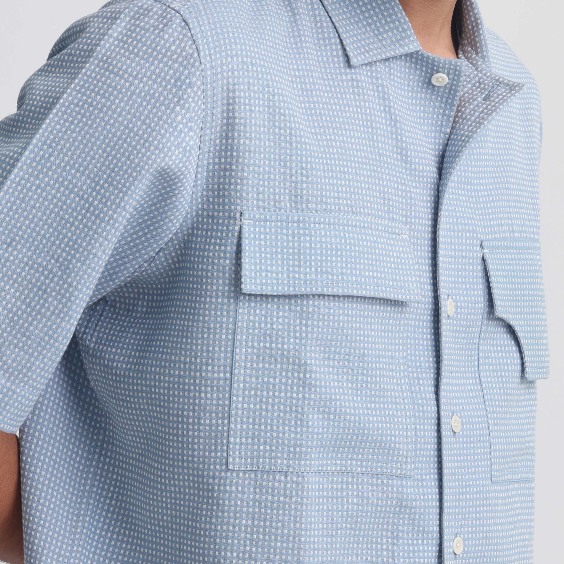 Handwoven checks fabric, Crochet detail at back yoke, Half sleeves, Corozo buttons.