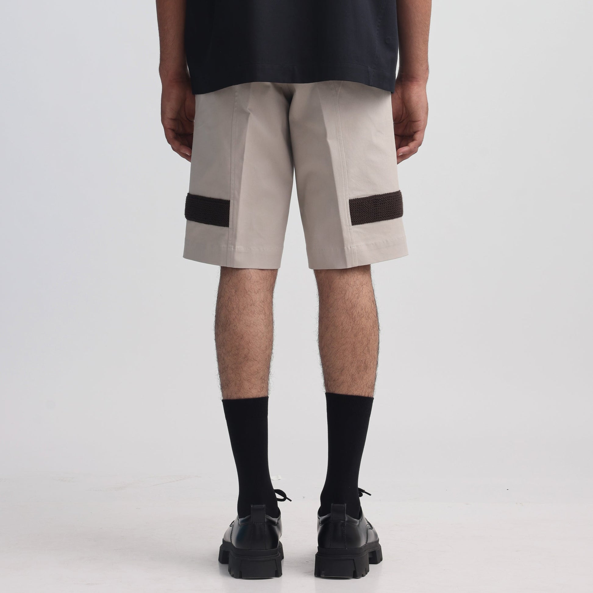 Handknit tapes on sides, Panelled construction, Top stitch on panels, Corozo button, Slant pockets.