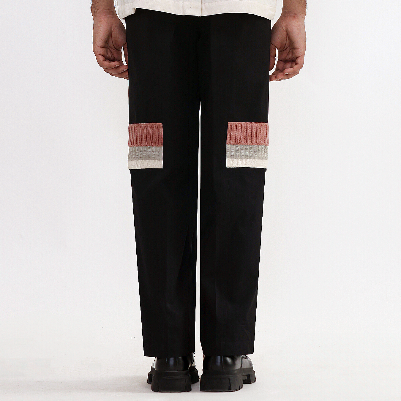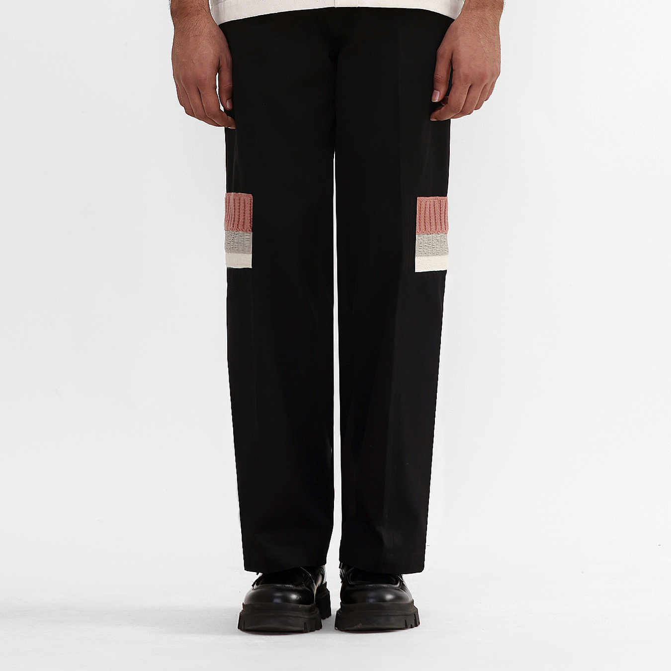 These trousers are made from 100% cotton twill offering comfort and breathability for summer wear. The slant cut pockets in the front provide practicality, while the multi-textured details at the knee, including hand-knitted rib tapes, add a handcrafted touch. A human symbol cut is featured on both the front and back, offering a unique design. The welt pocket at the back adds functionality, and the button fastening in the waistband ensures a secure fit. A relaxed, straight fit completes the look, ideal for lounging or casual outings.