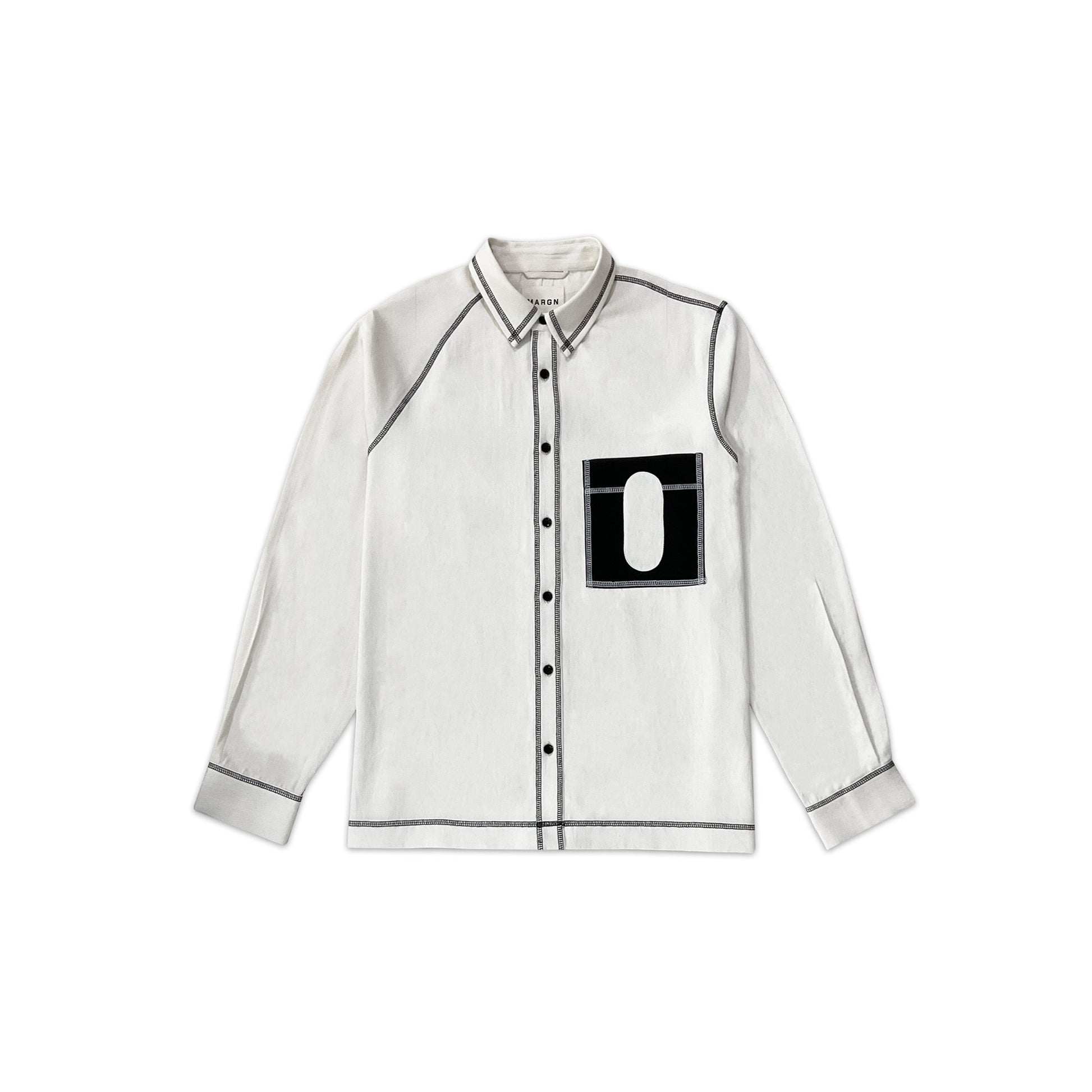 Symbolic patch pocket with Human symbol, Raglan sleeve on one side and regular sleeve on other, Contrast flatlock stitch, Full sleeves