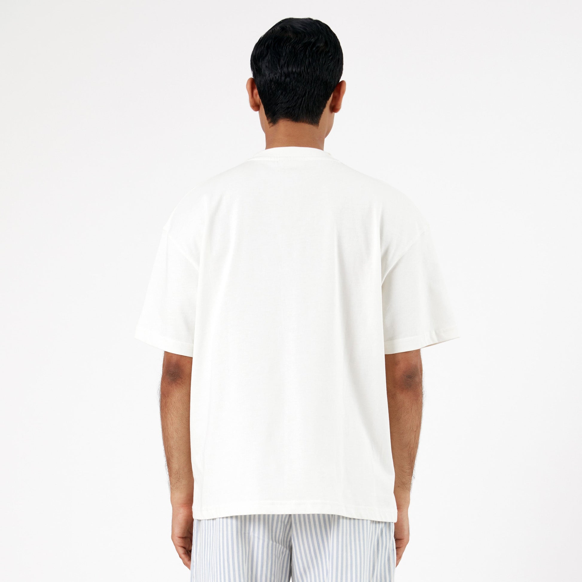 Made from breathable 240 GSM interlock fabric, this tee is perfect for summer. Designed with a slight drop shoulder for easy movement, it features a handmade crochet drawstring applique – a signature detail in our craft-led style. Pair it with a shirt and denim for an effortless everyday look.