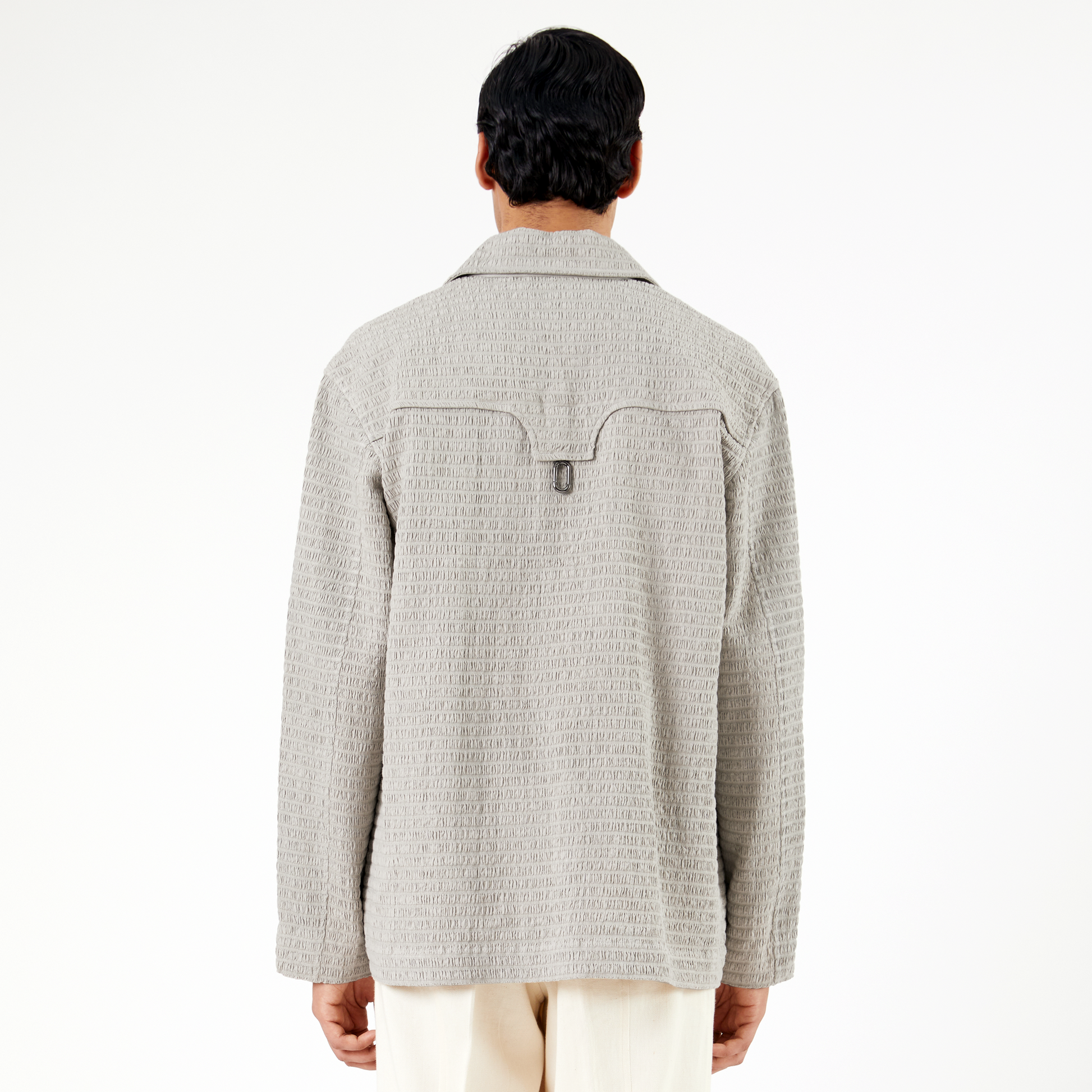 Crafted in a self-textured, wrinkled fabric that holds its form—even after washing—this overshirt is built to layer. With a relaxed fit and medium weight, it drapes easy over your basics, instantly elevating a simple tee or shirt.
