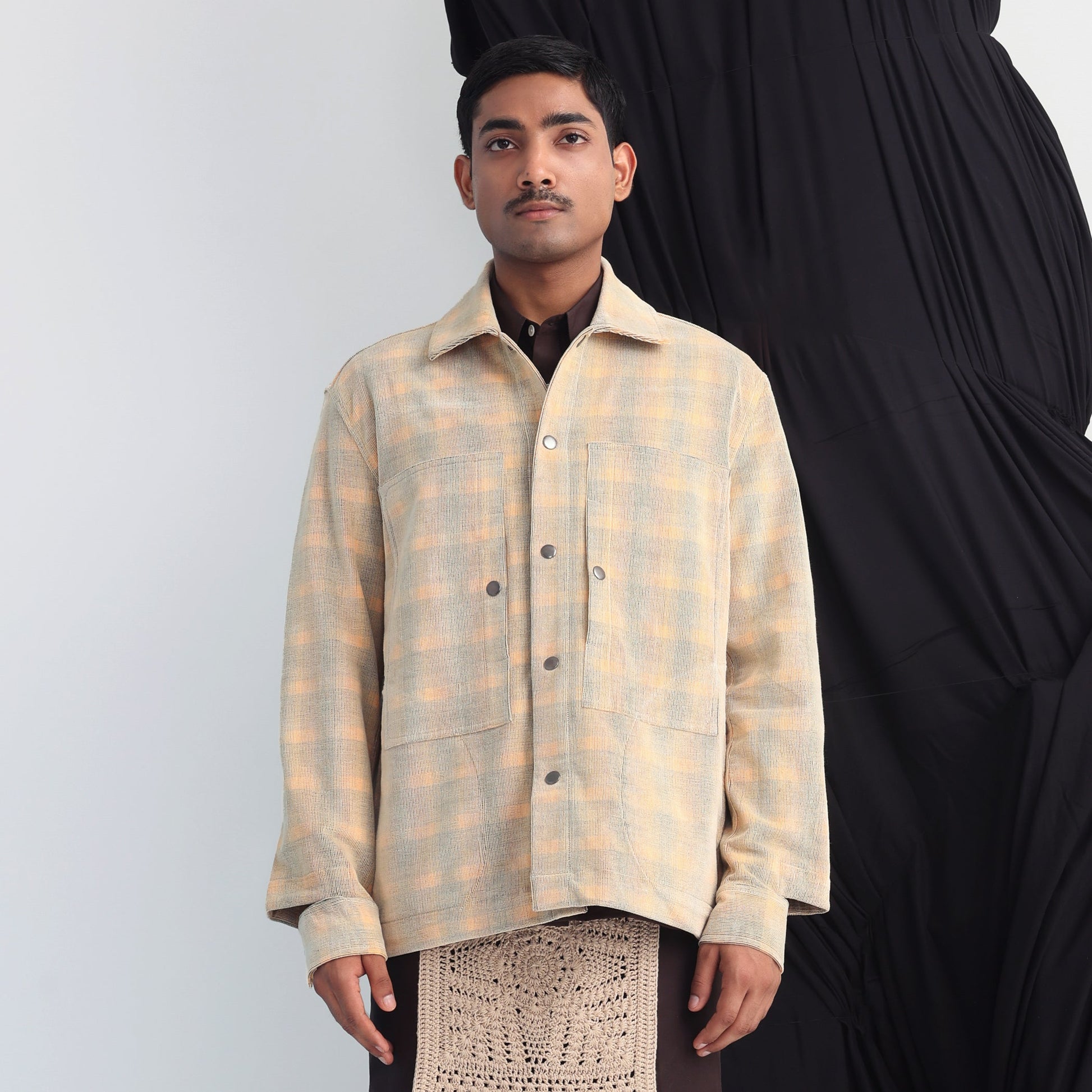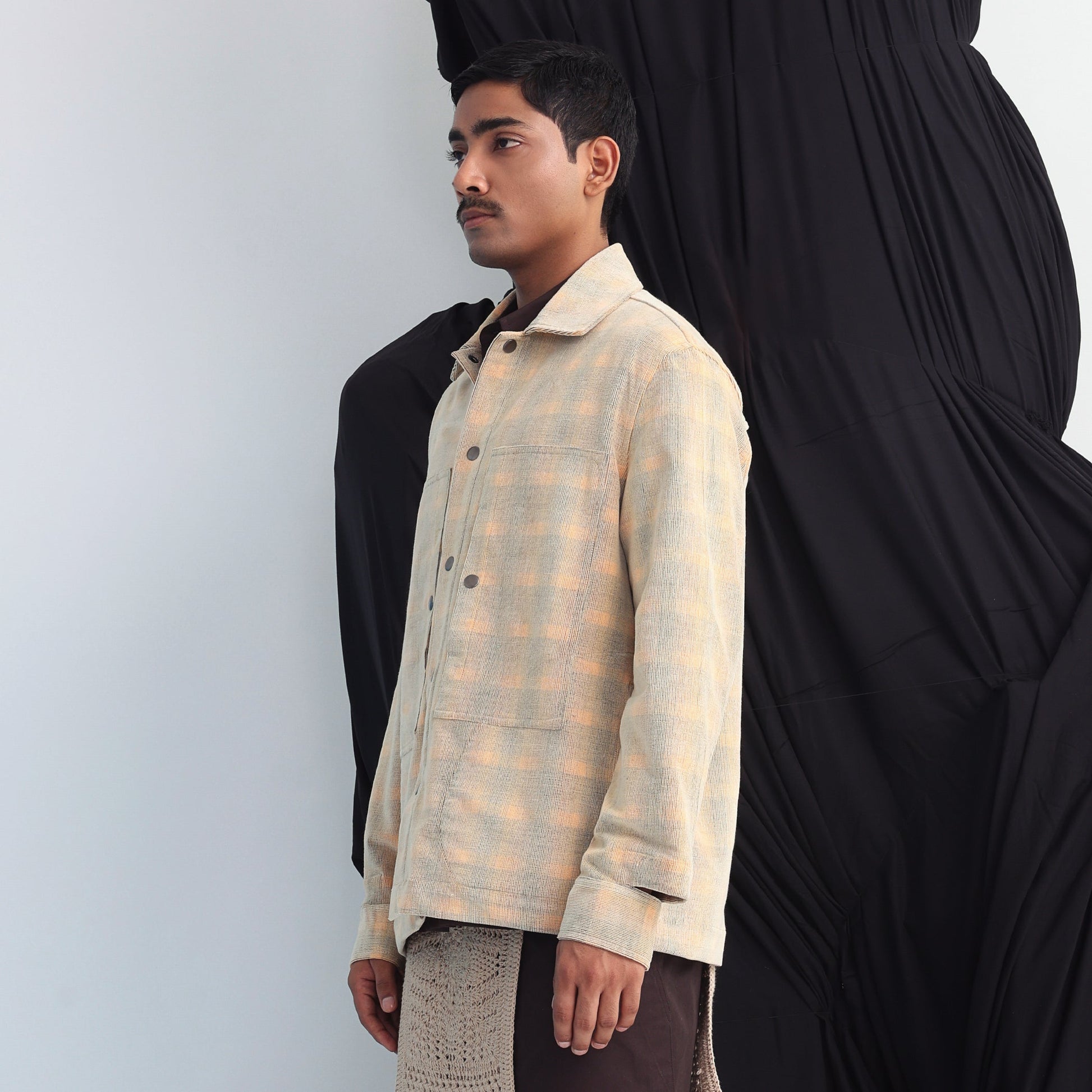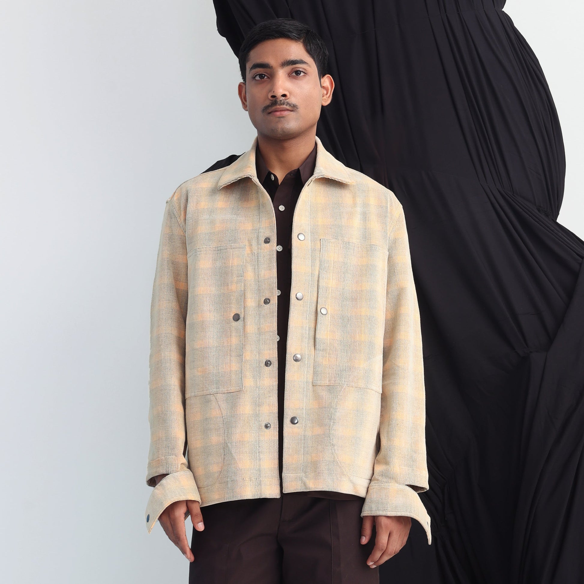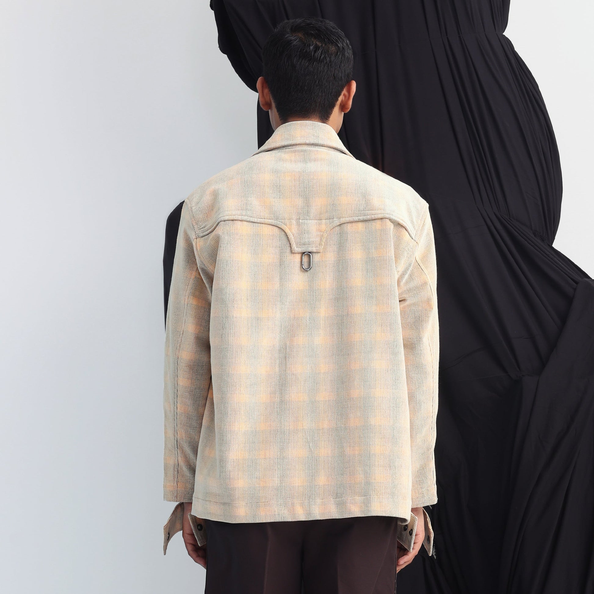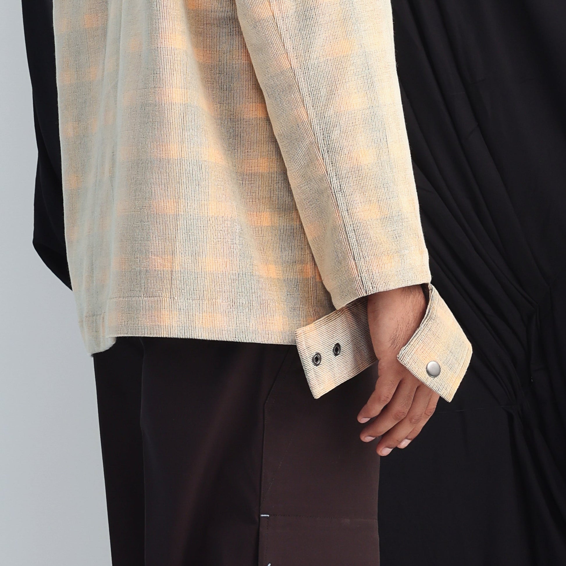 Patch pockets with snap buttons in front, Signature cut-out cuffs, Signature human symbol metal hook attached to yoke at across back, Full sleeves.