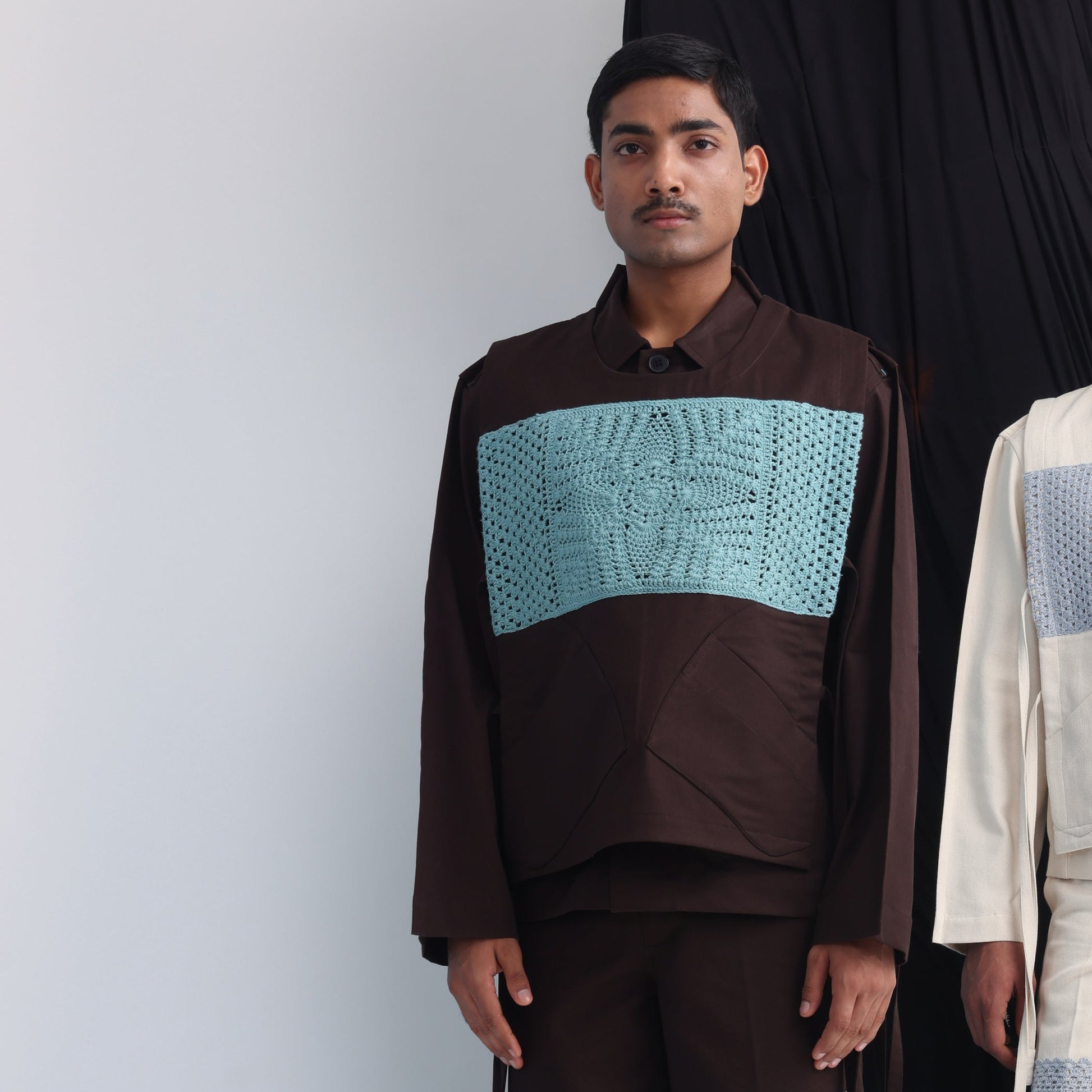 Epidermis Crochet Applique Vest- Dark Brown