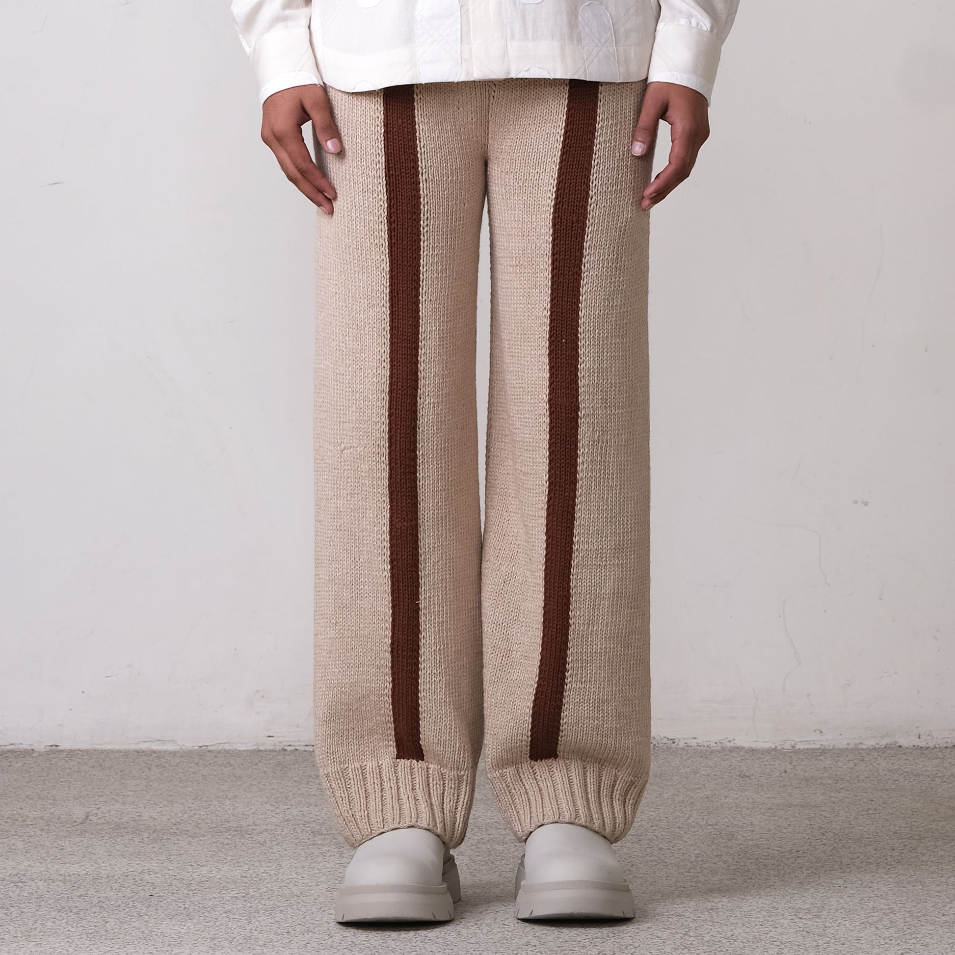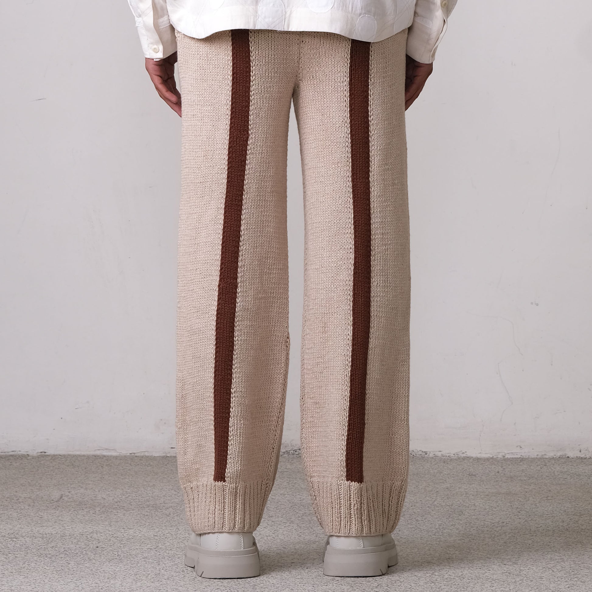 Hand-knitted by our all women's team in Kullu India, Stripes in front and back, Drawstring with loop detail in waistband, Side pockets.