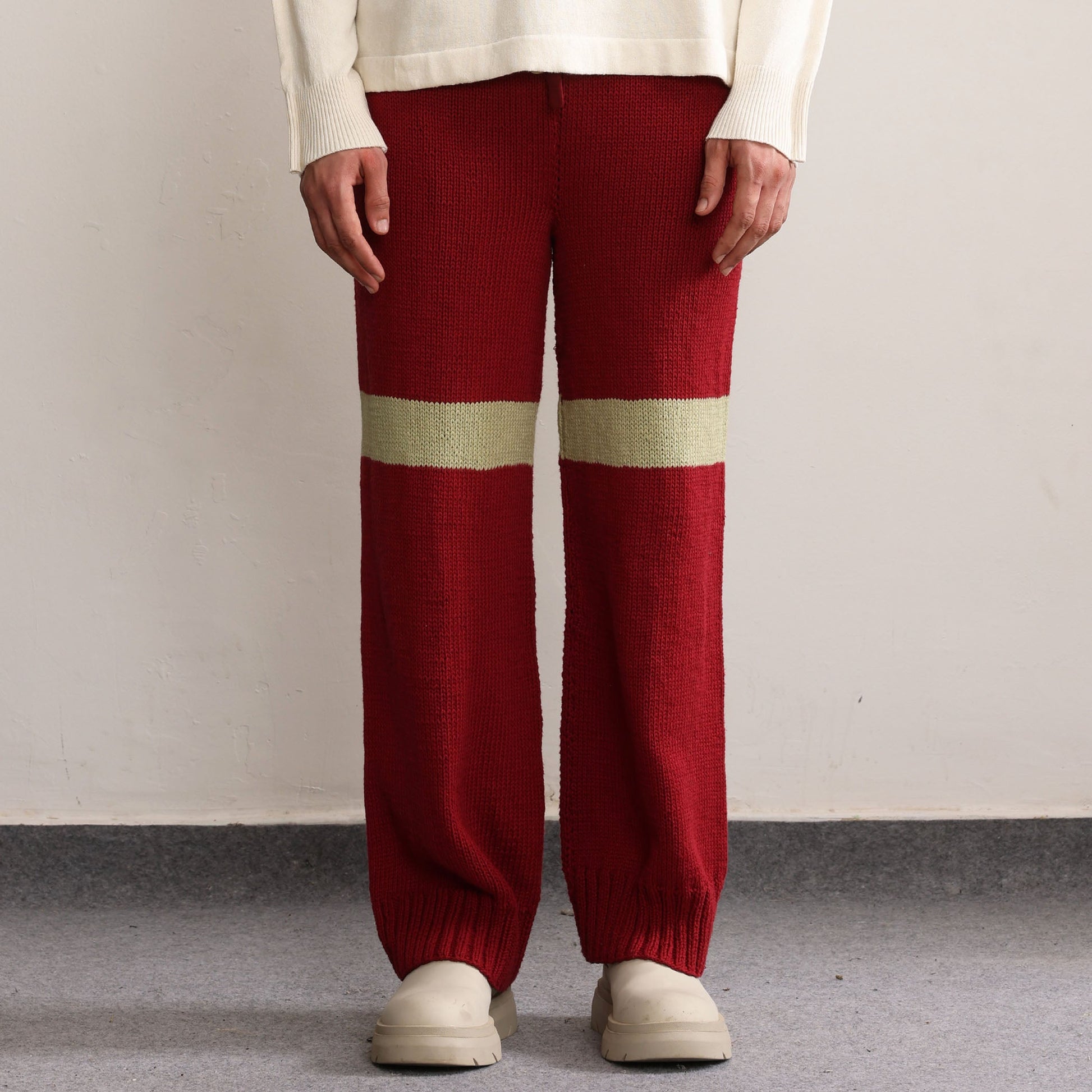 Hand-knitted by our all women's team in Kullu India, Stripes in front and back, Drawstring with loop detail in waistband, Side pockets.