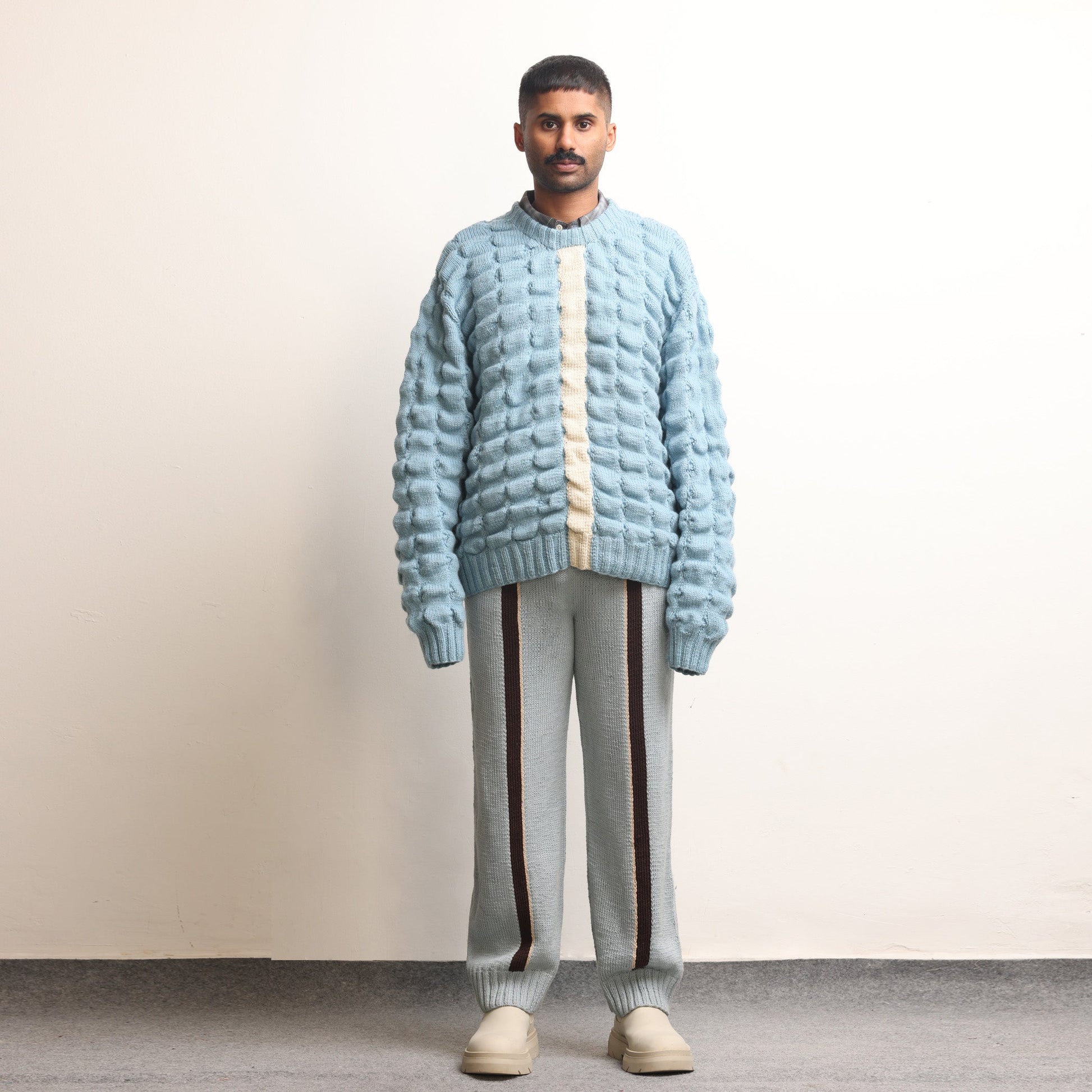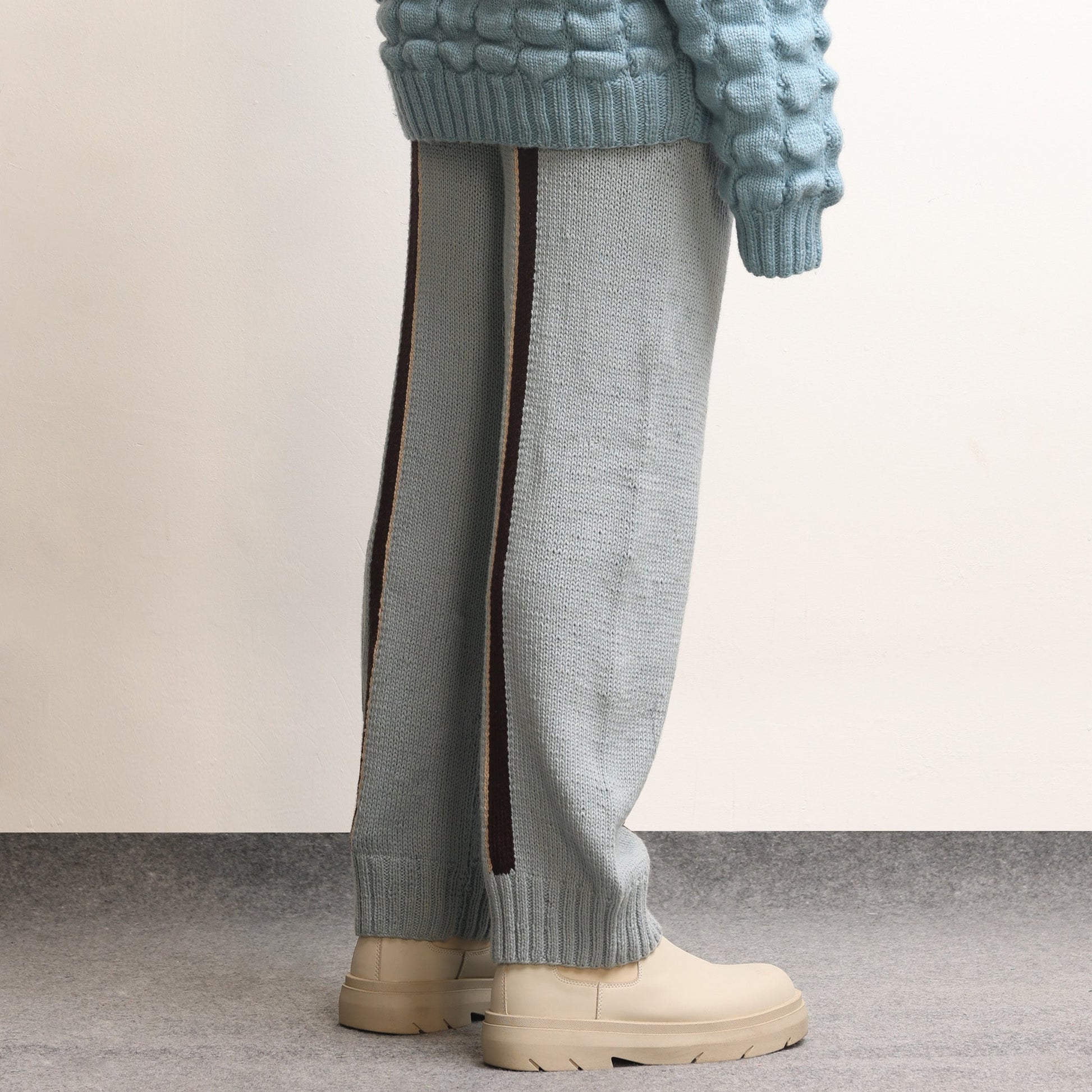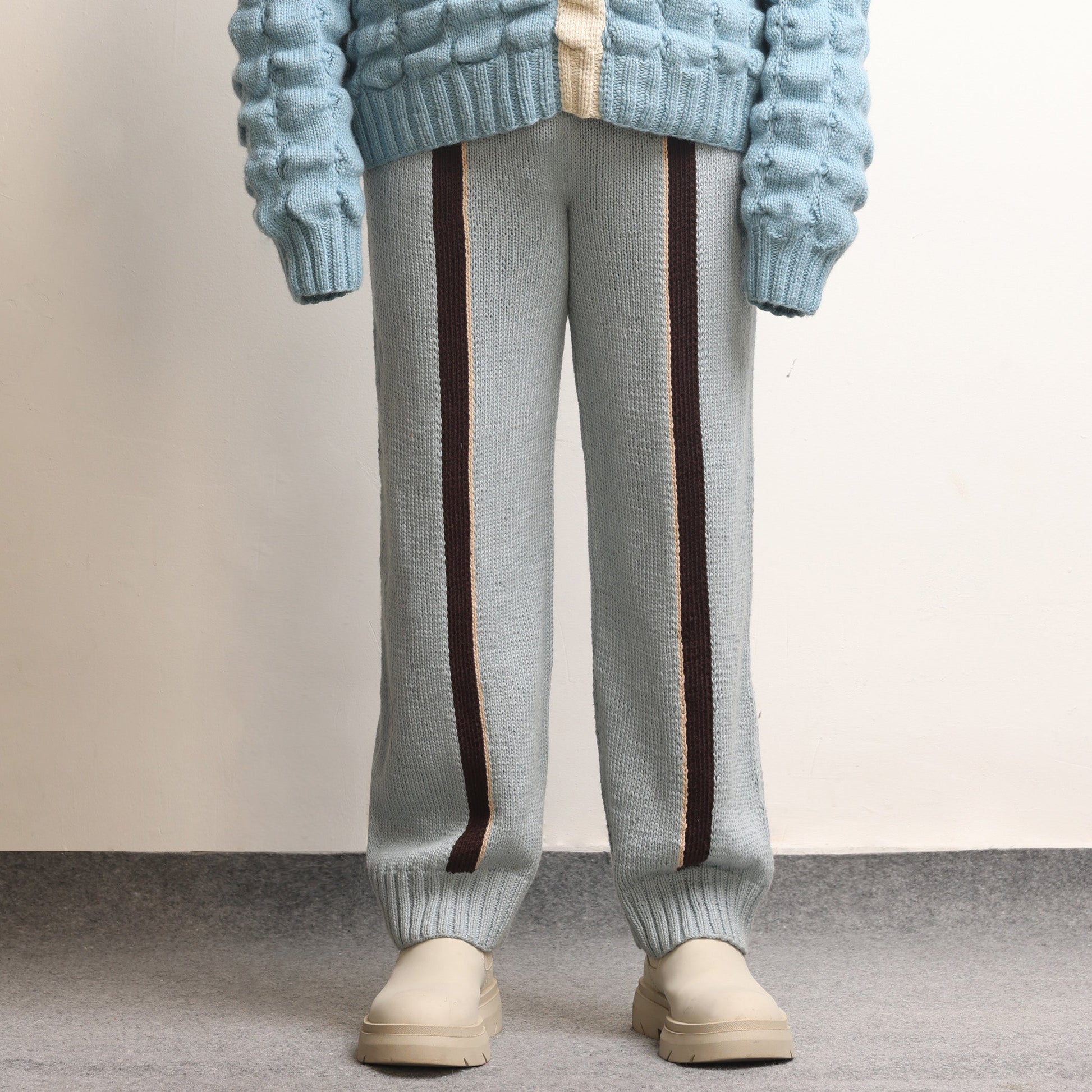 Fibula Striped Handknit Trousers- Sky Blue