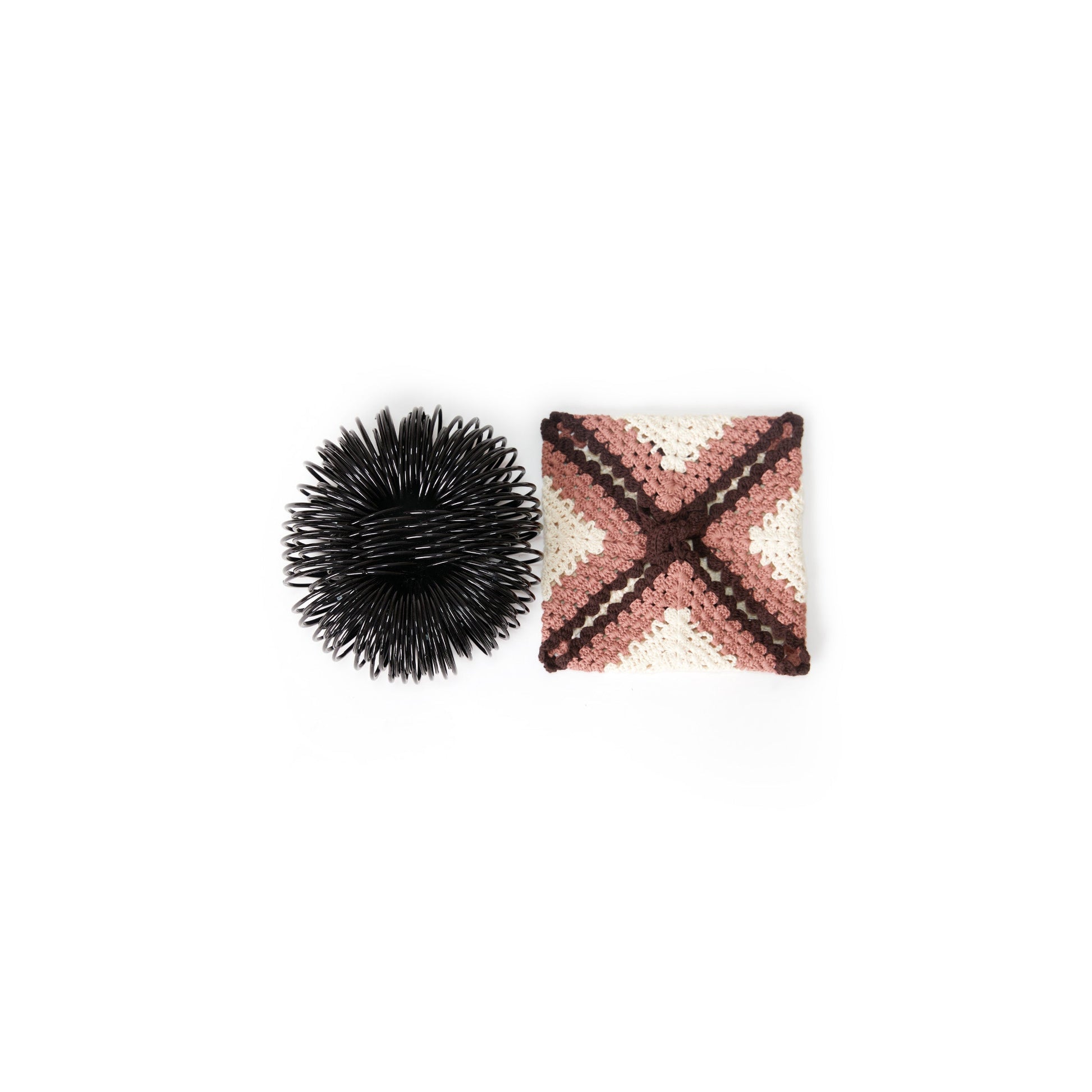 For this piece, we have wrapped the bangles in our signature hand-crocheted cover, created by our all-women team in the Himalayas. The cover can serve both as a base for display and as a decorative layer, softening the form and creating a dialogue between the rigid fragility of glass and the gentle tactility of crochet.