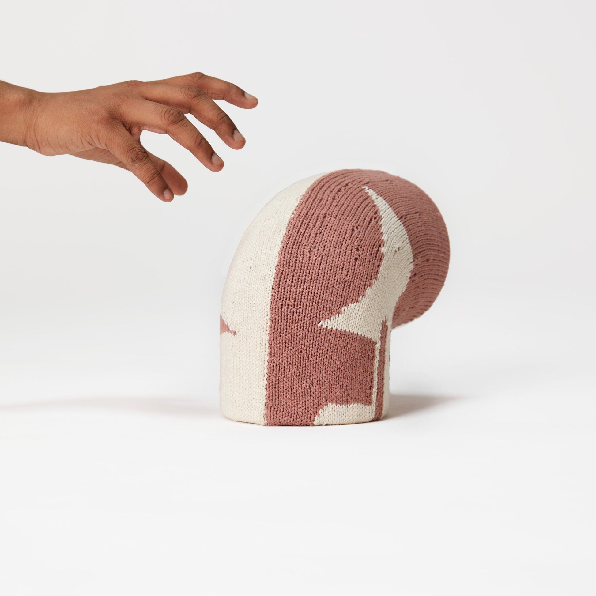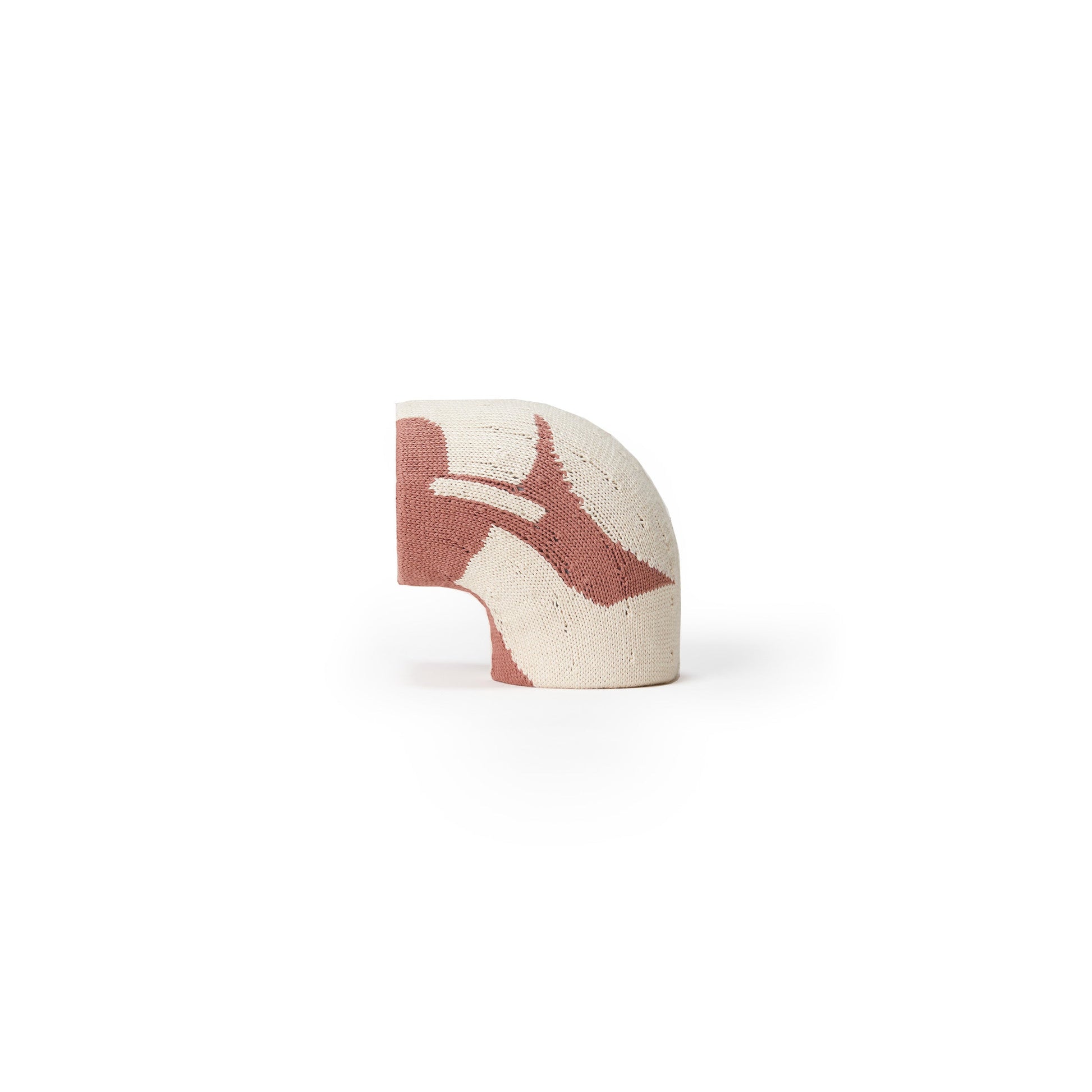 A handcrafted interpretation of an essential water distribution joinery, this piece reimagines industrial infrastructure through the language of craft. Layered in hand-knit intarsia by our all-women team in the Himalayas, it features a bold motif in dark salmon and off-white. The interior is fully lined with knit for a tactile, sculptural finish.Part of our Objects line — rare, symbolic artefacts that will never be repeated — this is a one-of-one collectible, merging utility and artistry in a singular form.