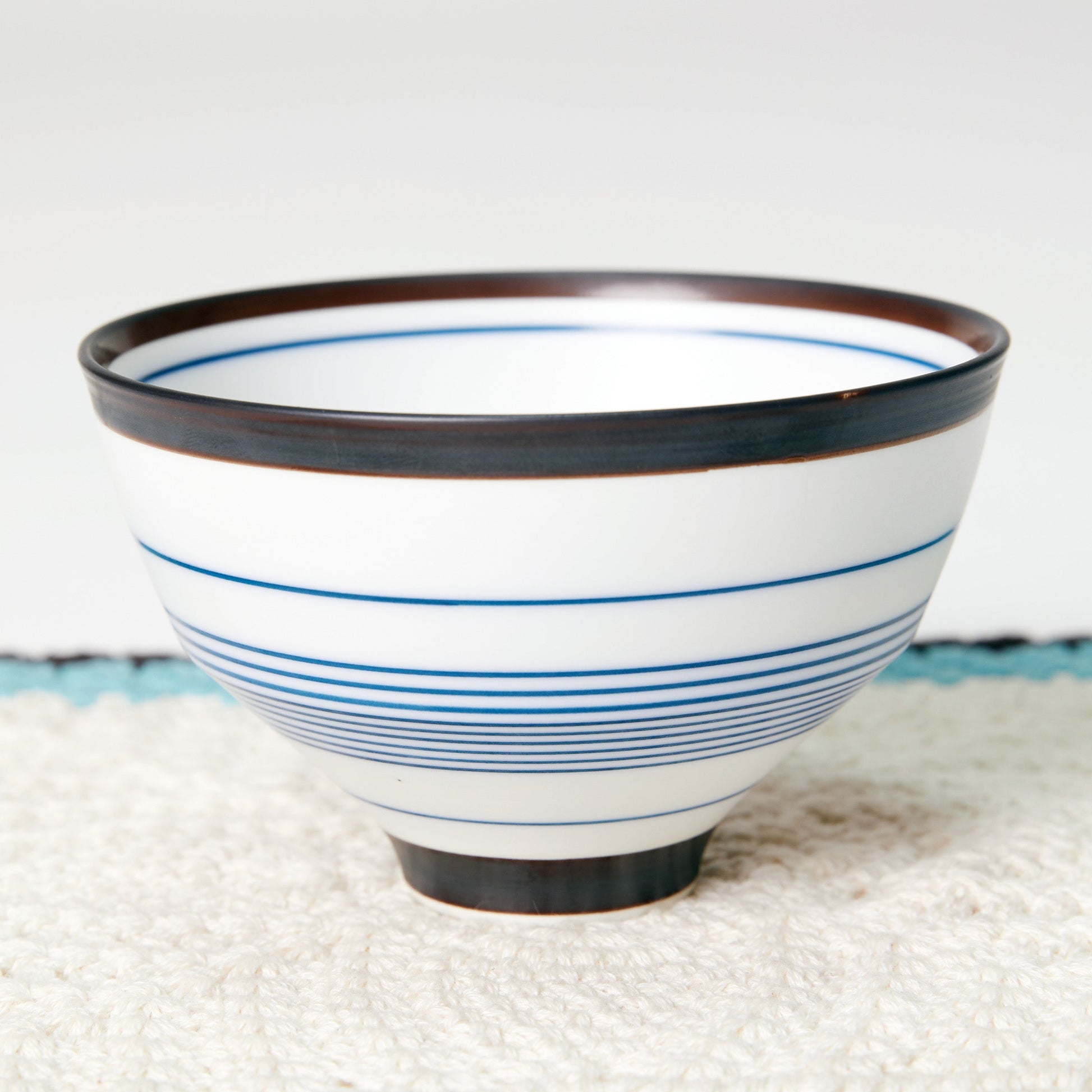 This porcelain bowl is handcrafted in Hasami, Japan — a town celebrated for over 400 years of ceramic tradition. Hasami ware is known for its delicate balance of form and function, created through a meticulous process where skilled artisans throw, glaze, and fire each piece with precision. The signature horizontal stripes are hand-applied, reflecting the quiet discipline of Japanese craftsmanship.