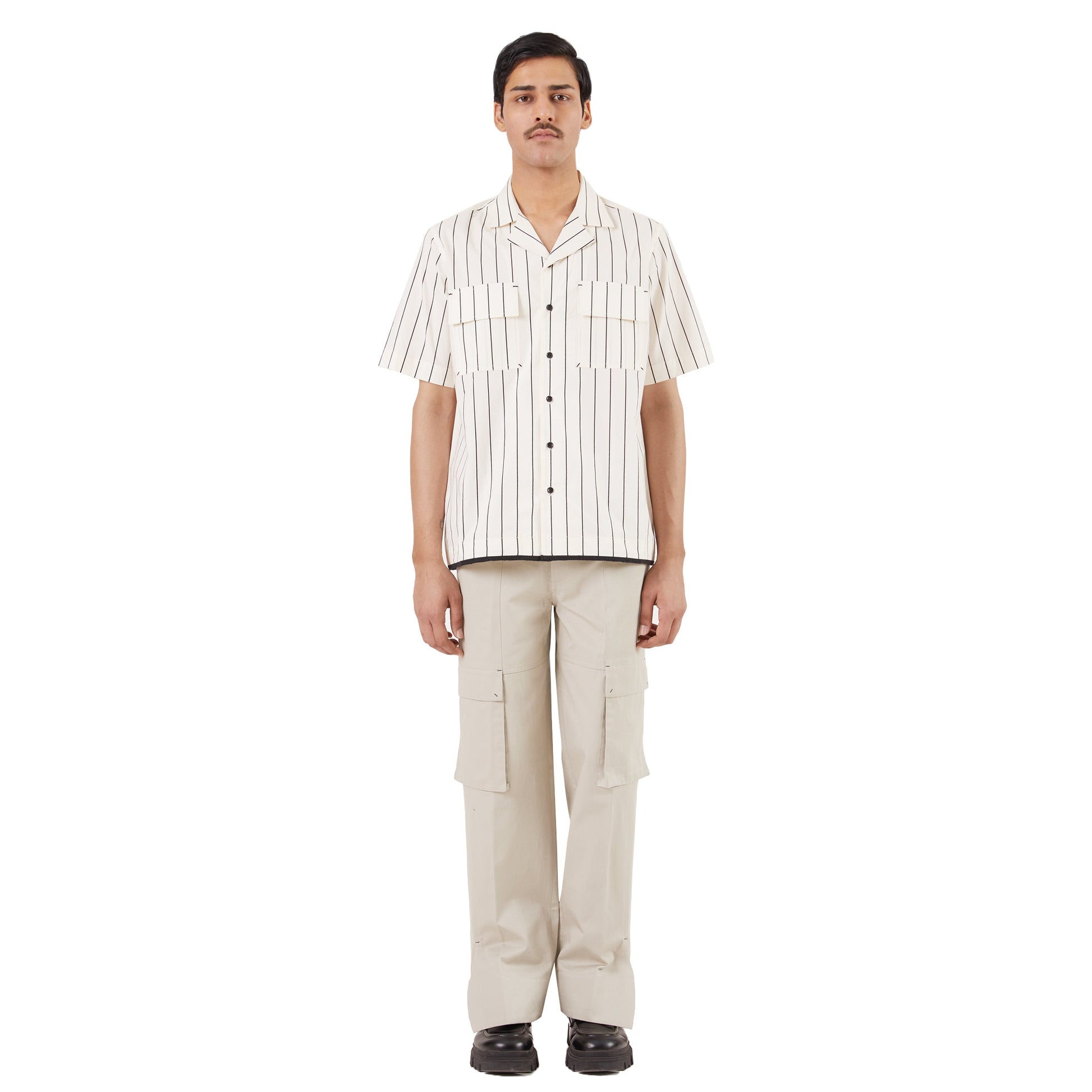 A signature Margn silhouette—straight fit pants with a handknit hem nodding to military regiments. With a straight fit, bartack detailing throughout, and a single bone welt pocket at the back, this piece blends craft, function, and symbolism in one refined design.