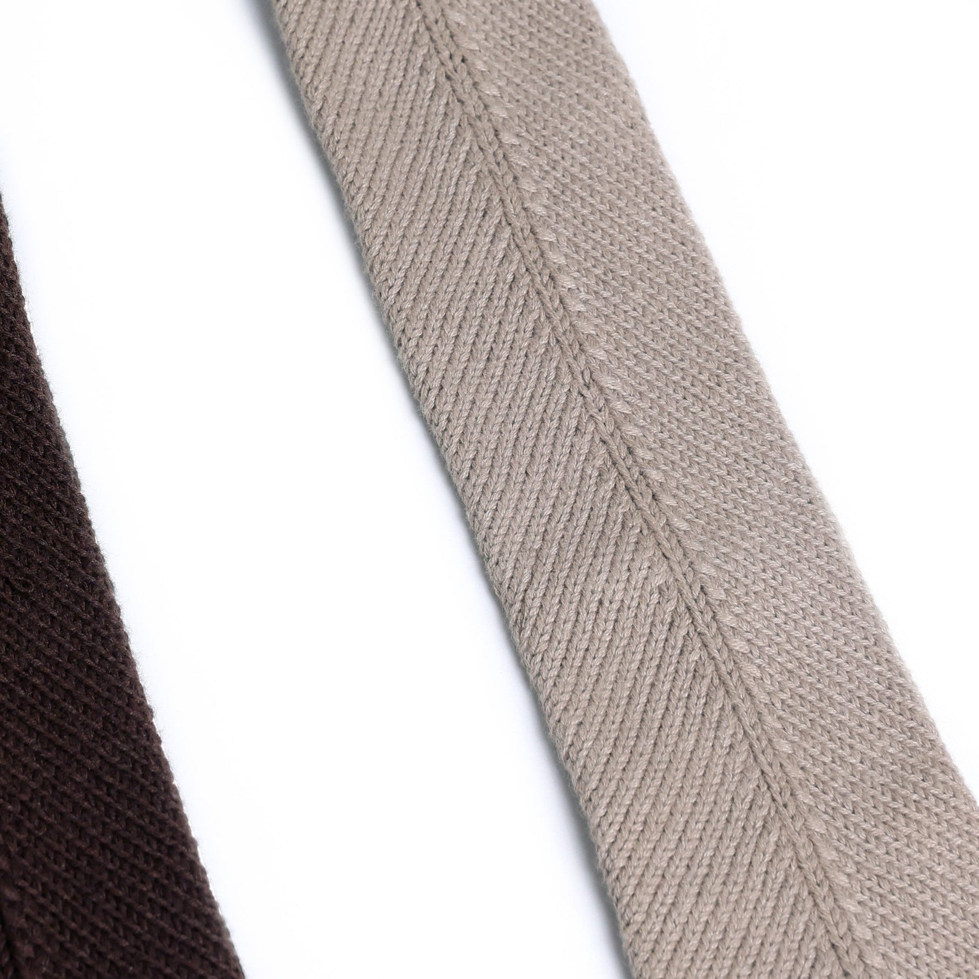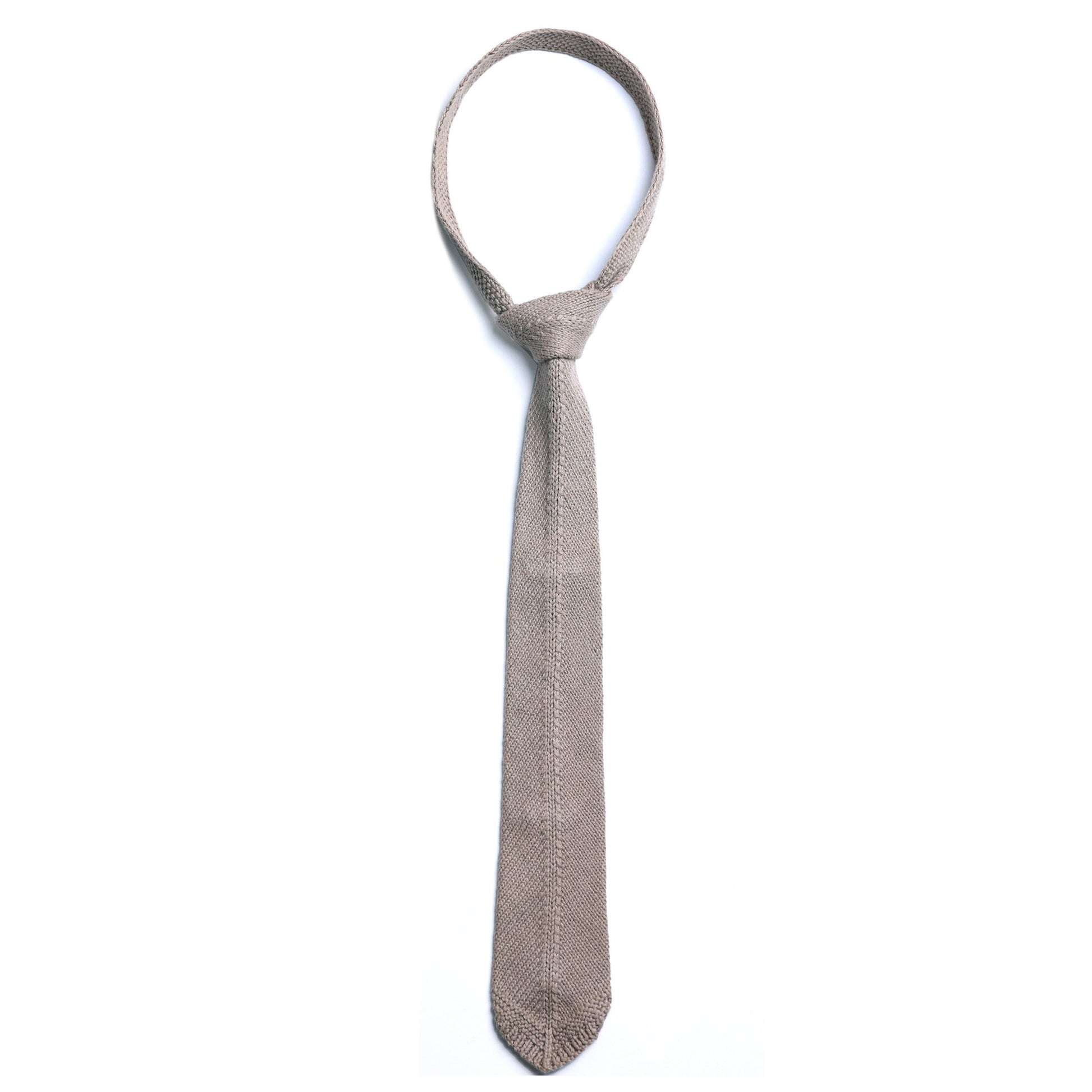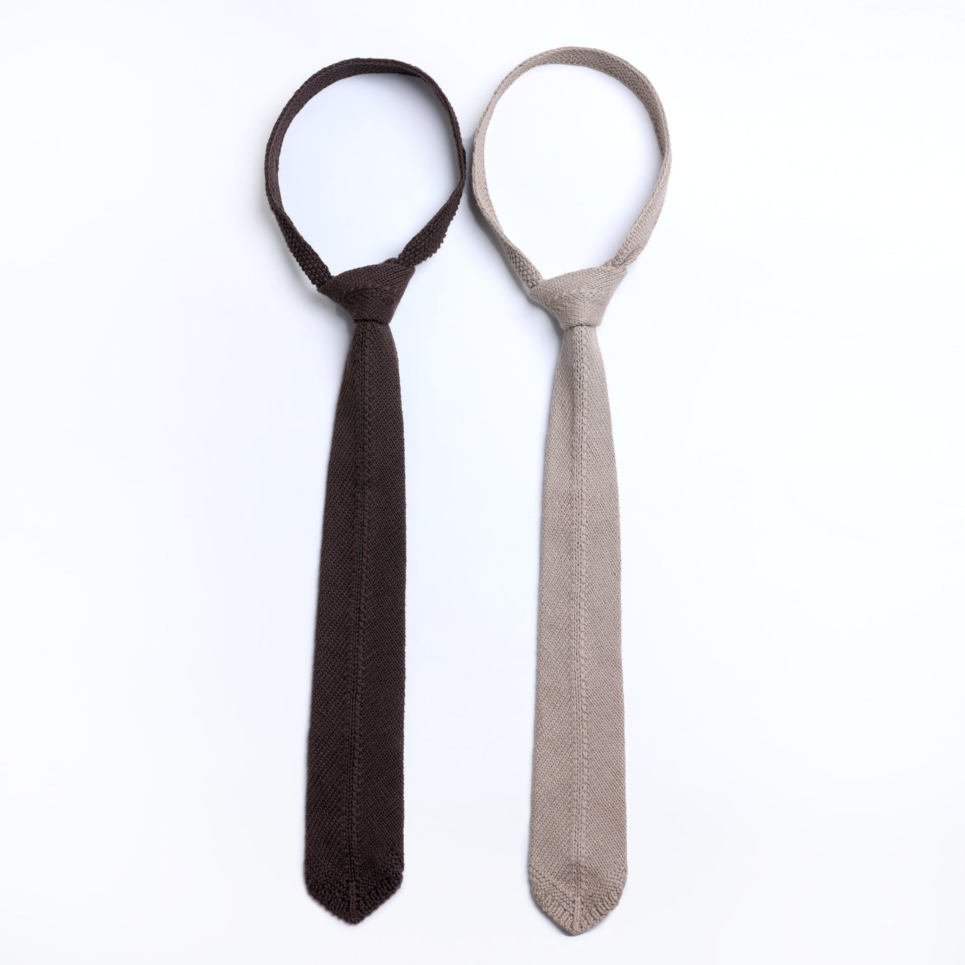 Made from 100% cotton, this necktie is hand-knitted by our all-women's team in Kullu, India, bringing together traditional craftsmanship and modern design. Featuring a diagonal knit detail and a mix of knit structures, the tie offers a unique texture that stands out. The vertical plain knit detail down the center adds sophistication, while loops at the back ensure a perfect fit. When tied, the chunky knot creates an interesting finish, adding personality to any look. Choose between Beige for a soft, neutral look or Dark Brown for a luxe, sophisticated feel.