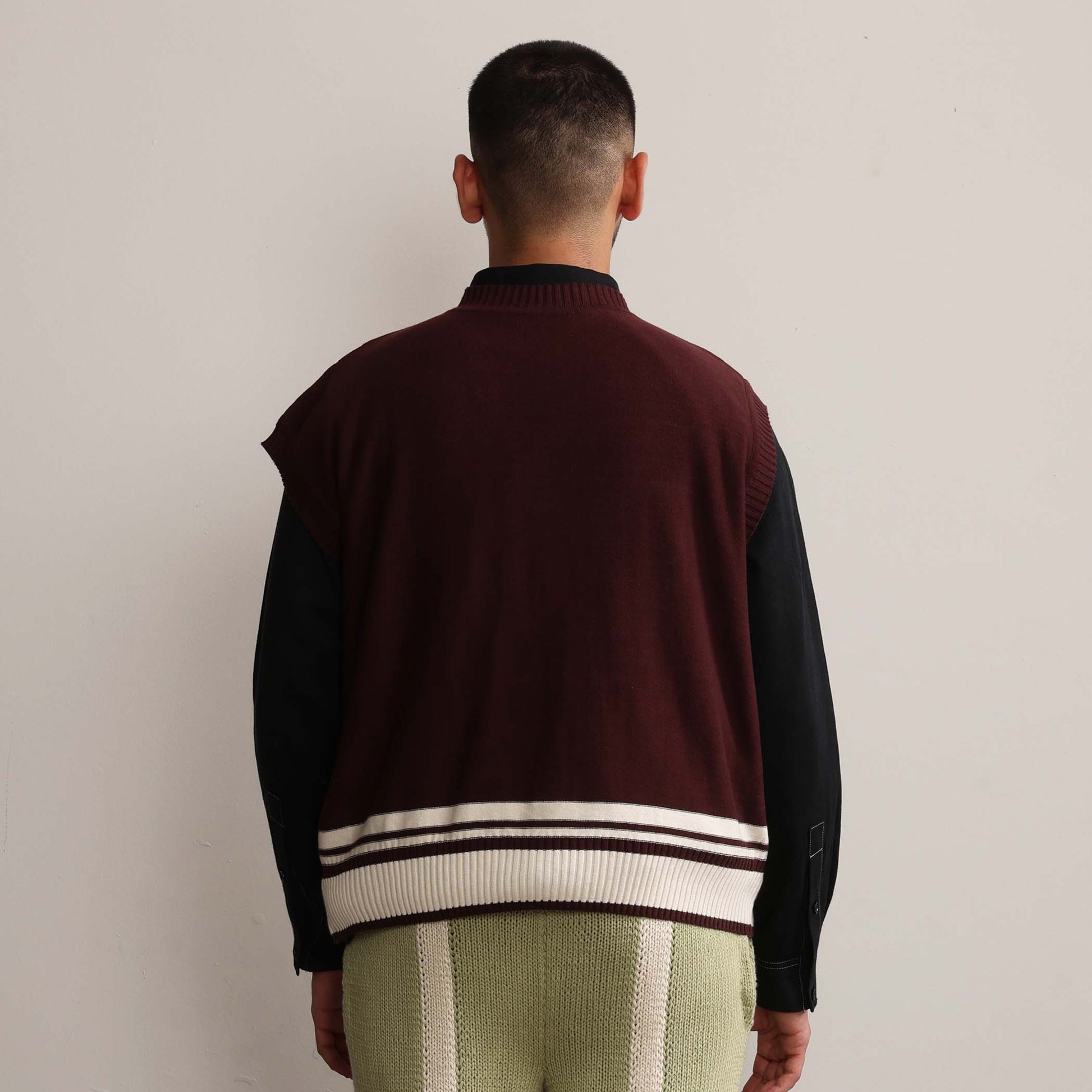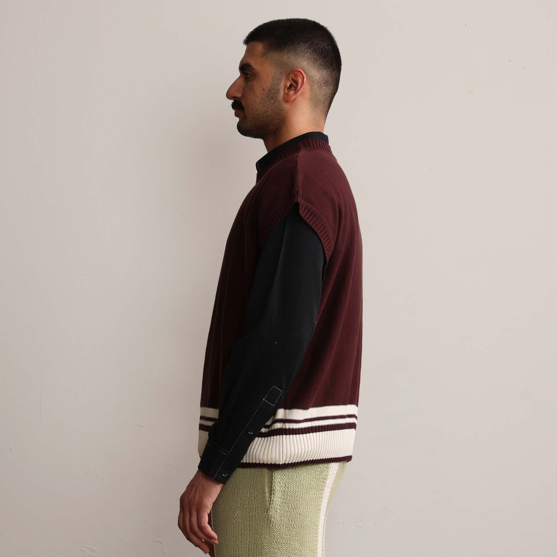 Hand-knitted on Flat-bed loom, Human symbol applique in front with hand tacks, Asymmetric shoulders.