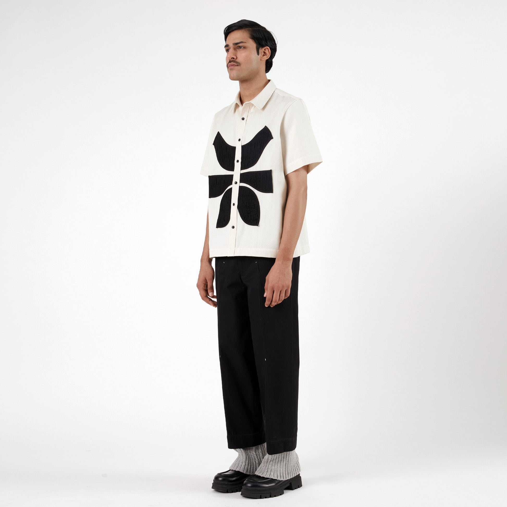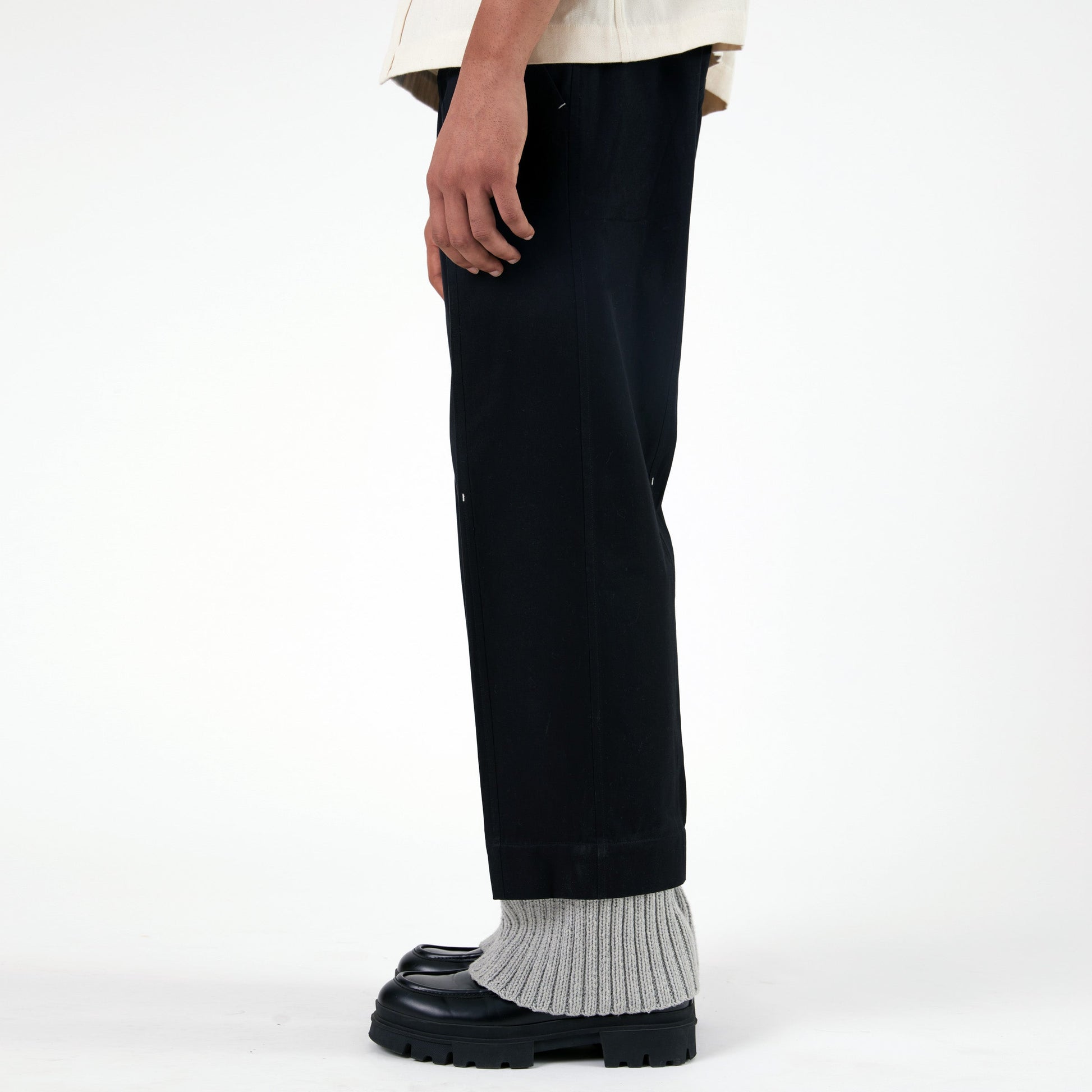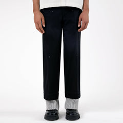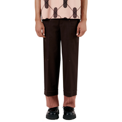 A signature Margn silhouette—straight fit pants with a handknit hem nodding to military regiments. With a straight fit, bartack detailing throughout, and a single bone welt pocket at the back, this piece blends craft, function, and symbolism in one refined design.