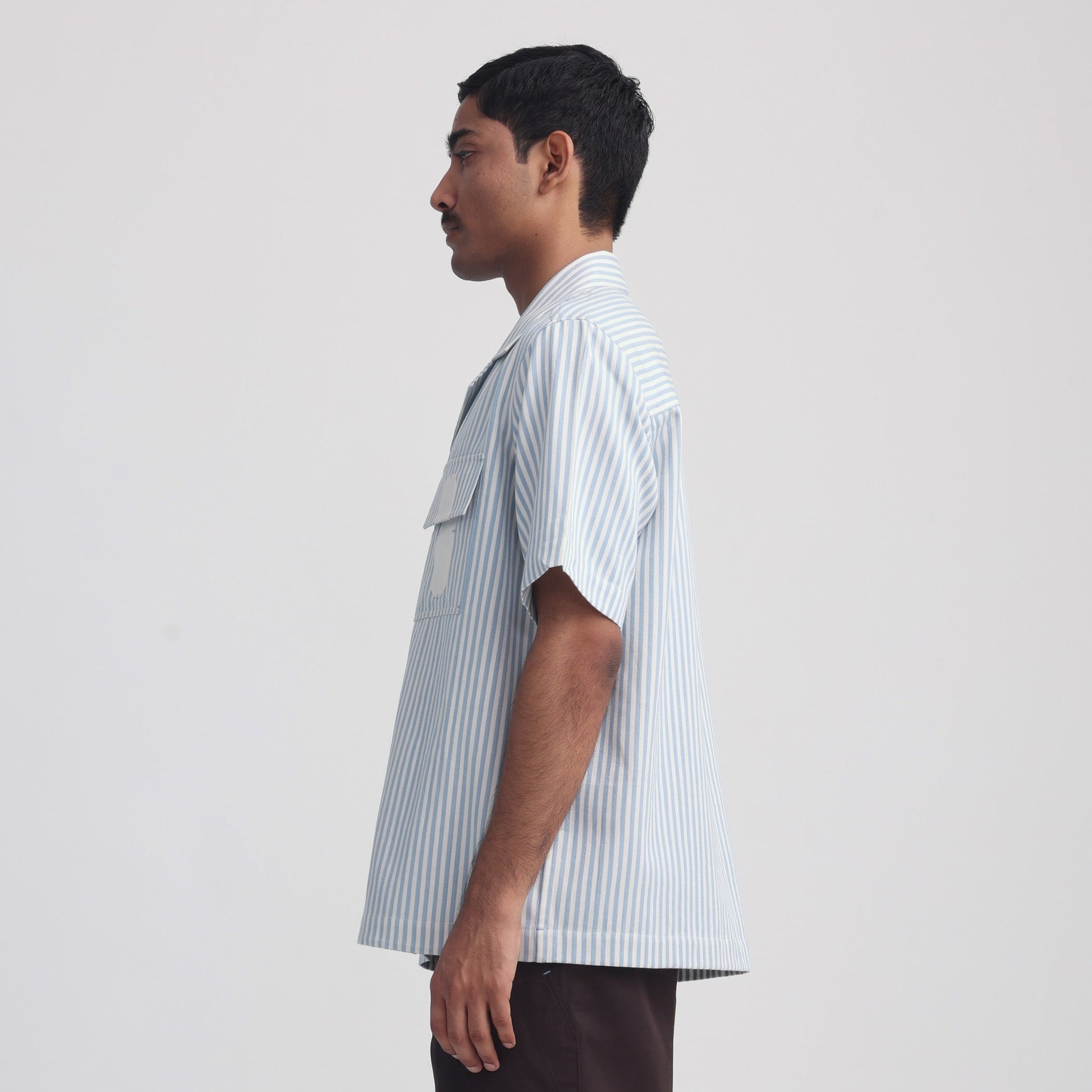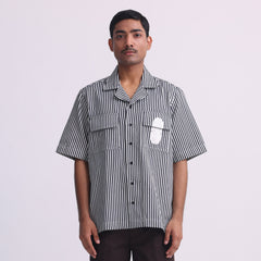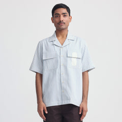 Camp Collar, Handtacks, Patch pocket with flaps, Human symbol with handtacks, Corozo buttons.