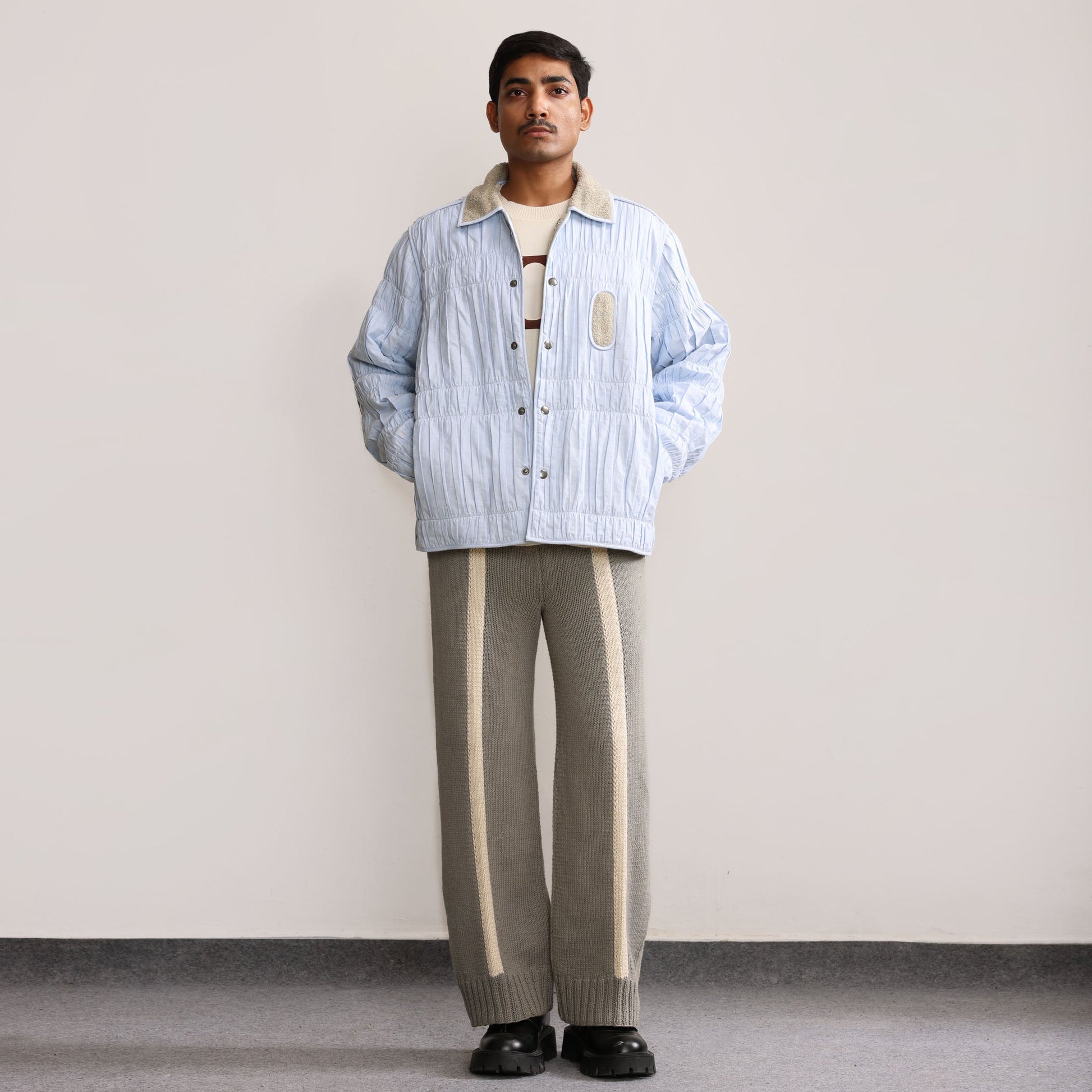 Margn signature wrinkle effect on the shell fabric, Natural dyed cotton terry lining, Edges finished with binding, Human symbol in front.